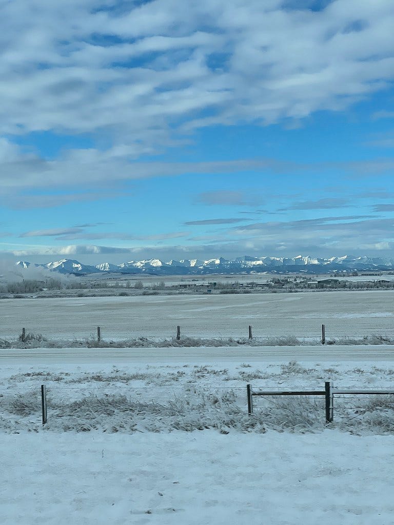 Before we got to the border, a massive flock of snow geese, flying lower than I’d ever seen, passed over us. Their tenacity and hardiness is astounding, and I was briefly enraptured by the sight and sound of them heading resolutely south, honking the whole way, almost supernatural in their mass unquestioning adherence to this pattern. Overhead, an ancient ritual was taking place. I felt wonderfully small and excited - we were all going to Montana, and I felt like I had the best escorts and good luck signs in the world.
